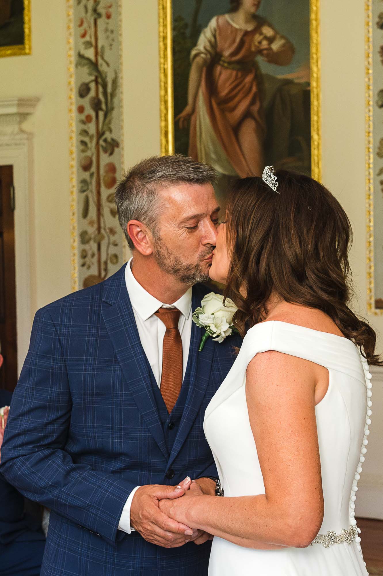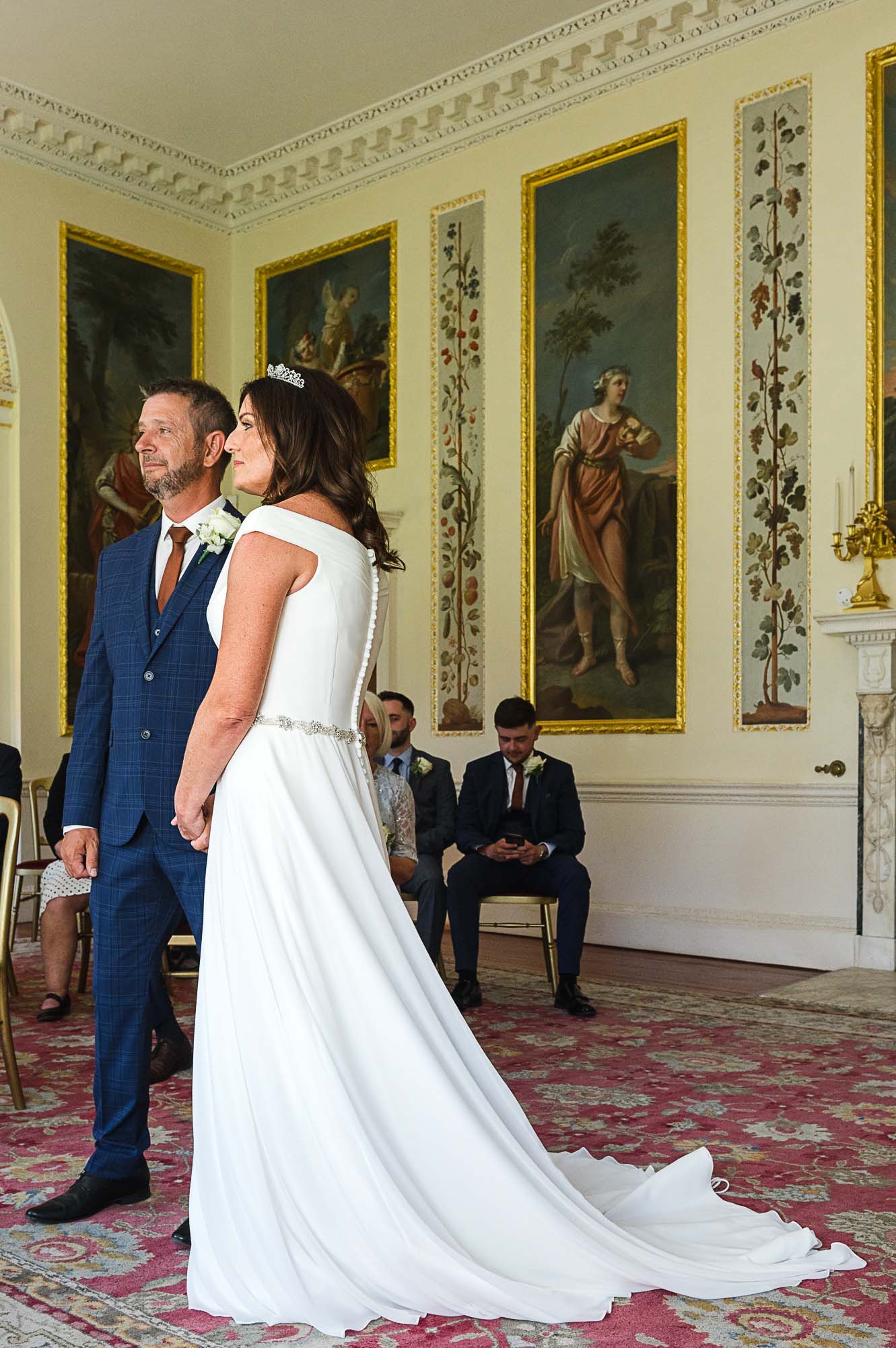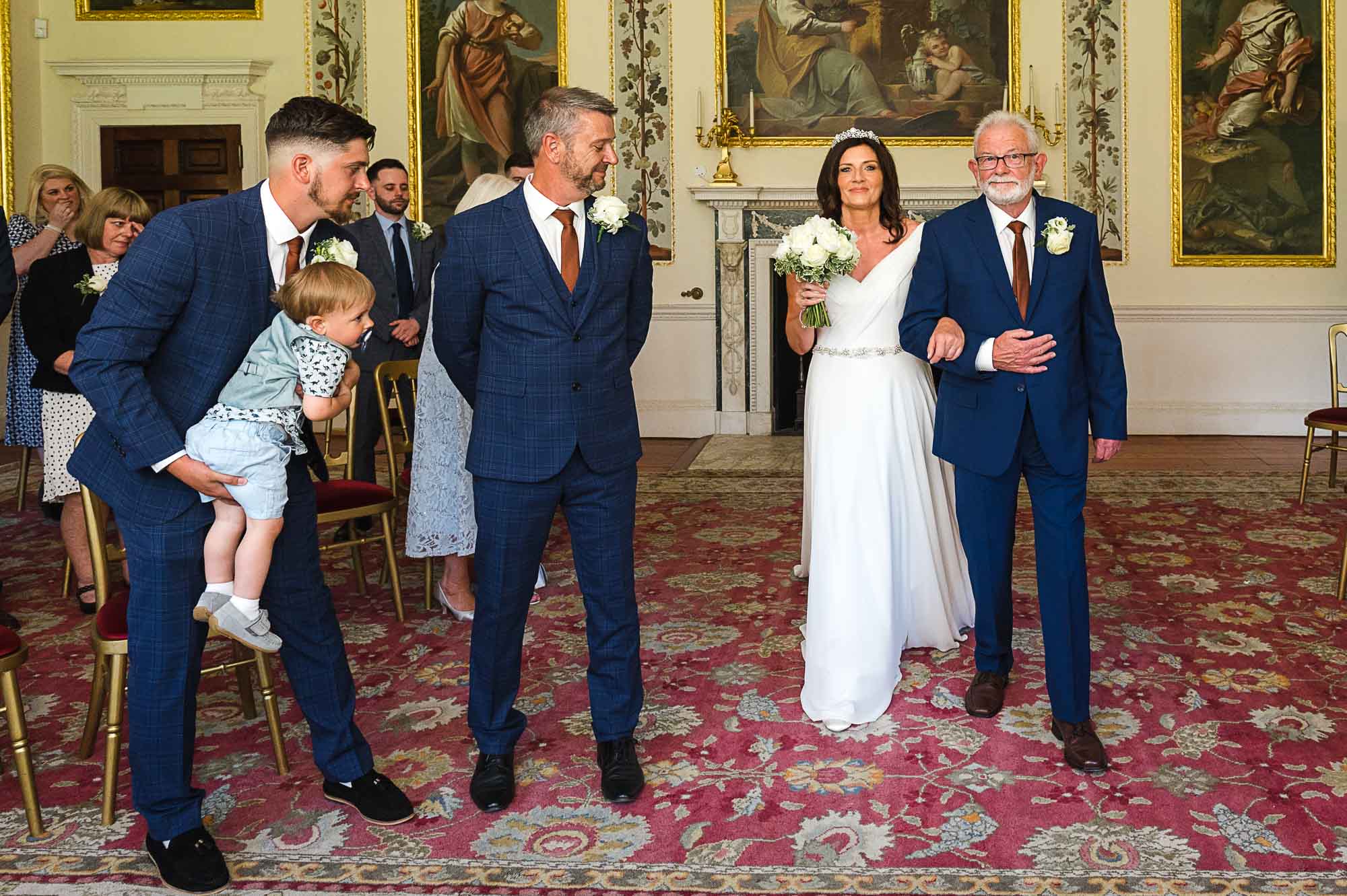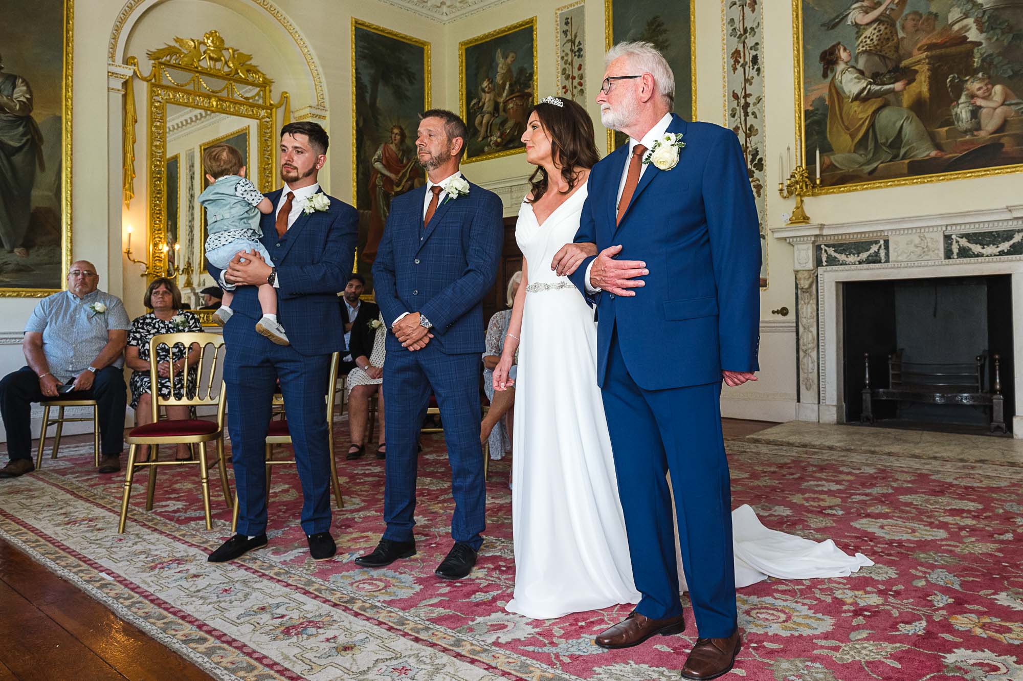 The couple chose the Dining Room at Danson House for their vows. With its signature cream walls, intricate gold detailing, and classic artwork, it is arguably one of the most beautiful registry rooms in Kent. Surrounded by their closest family and friends, Caroline and Luke exchanged vows in an atmosphere that felt both grand and deeply personal.