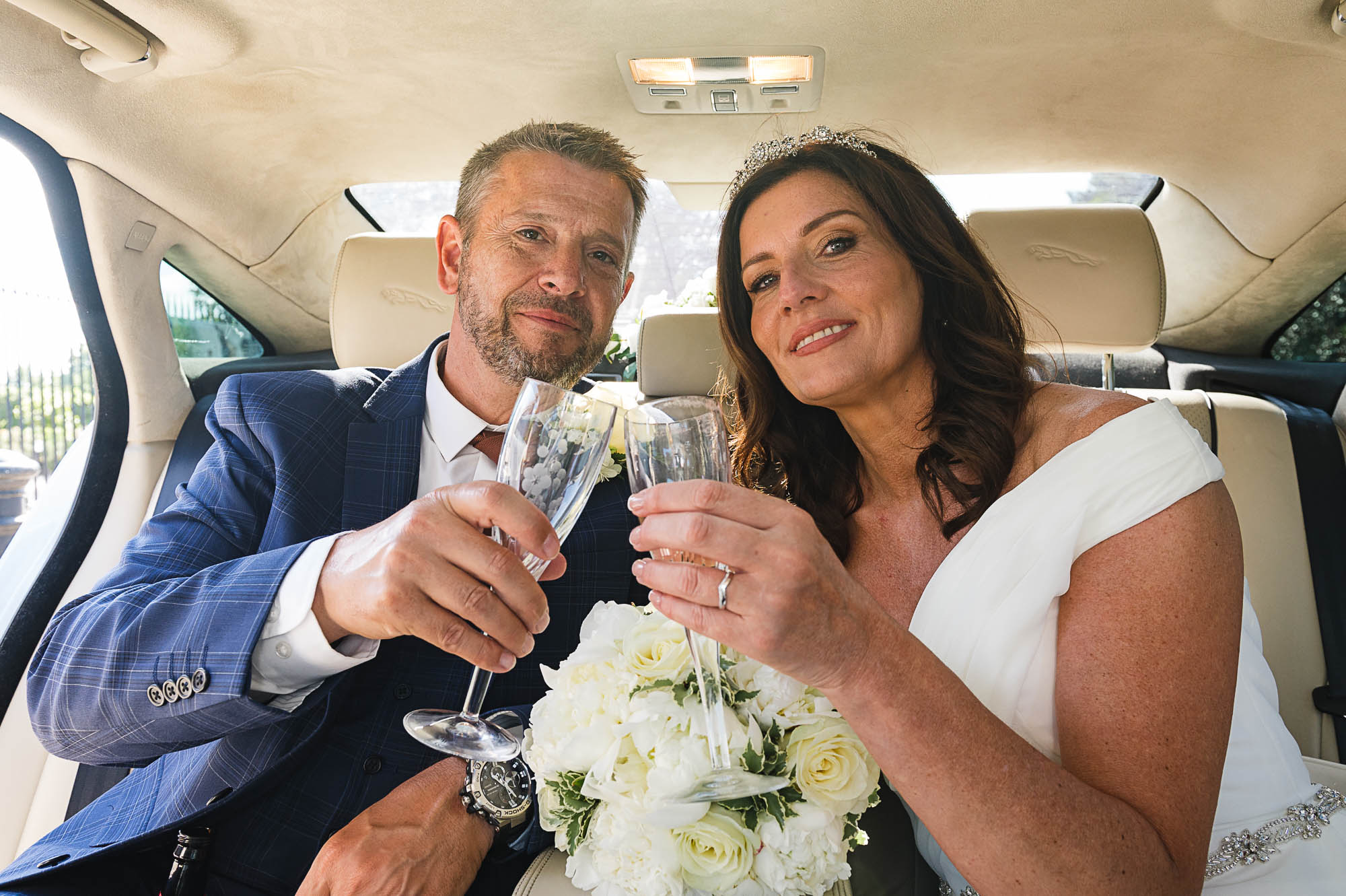 Caroline made a truly unforgettable entrance. Looking effortlessly cool, she arrived in a stunning ice-blue Jaguar XJL wedding car provided by Luke’s own company, Three Kings Wedding Cars based in Sidcup. It was a beautiful personal touch that set the tone for their stylish celebration.