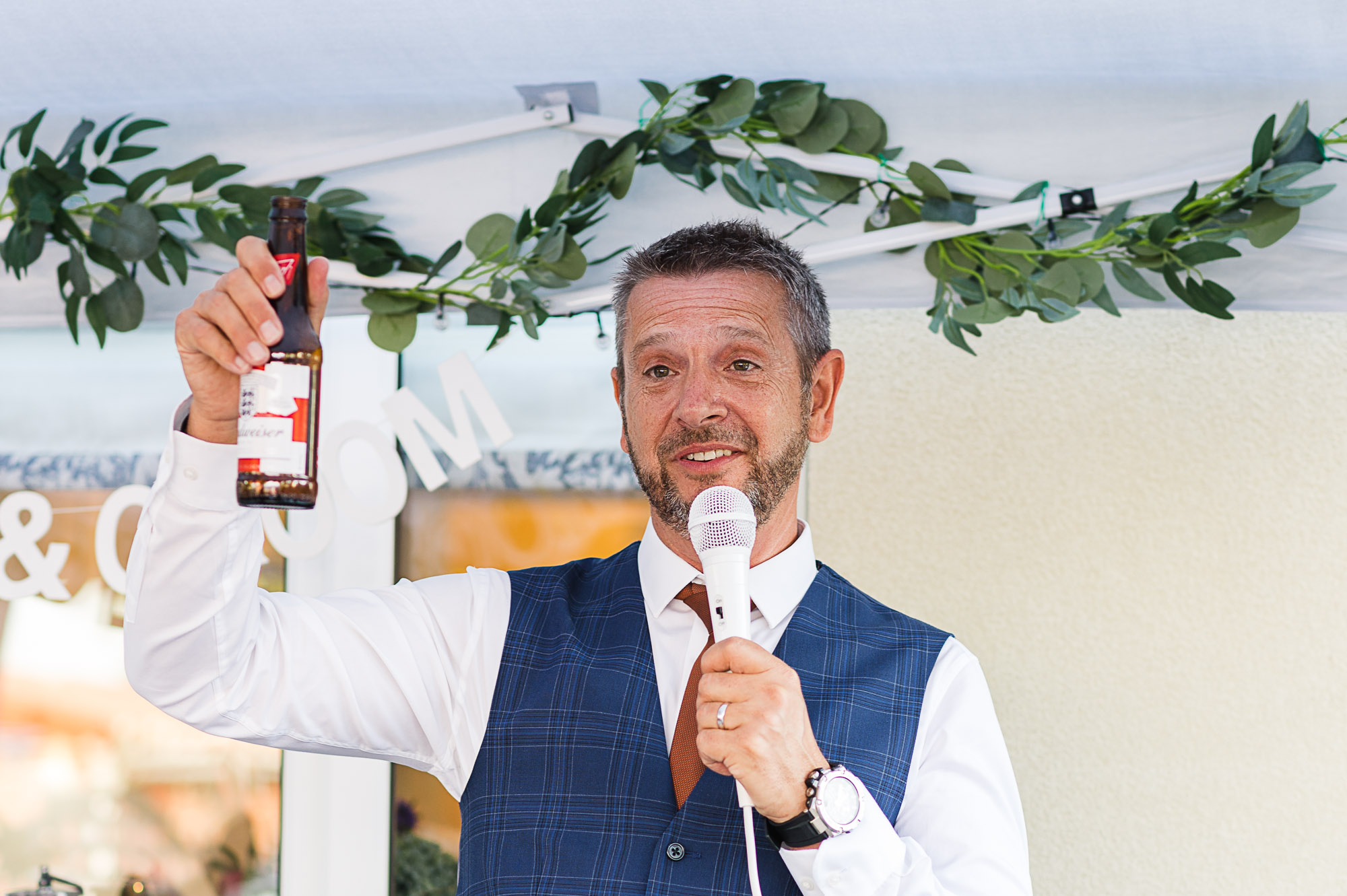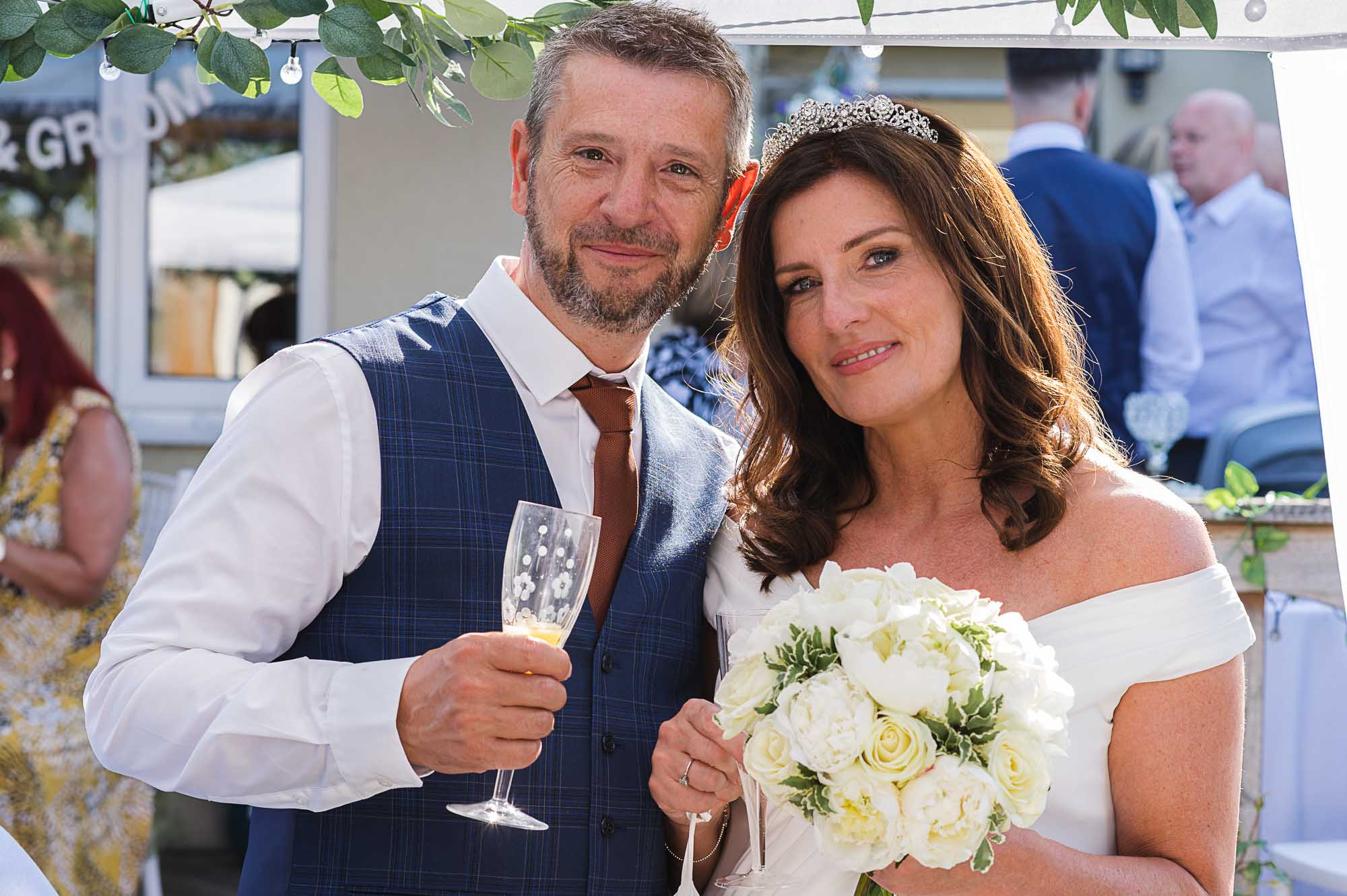 The celebrations didn’t end at the park. The party moved back to the couple’s home for an intimate evening reception in a beautifully styled garden marquee. Transitioning from the historic elegance of Bexleyheath to a relaxed home setting allowed the newlyweds to celebrate their marriage exactly how they wanted.