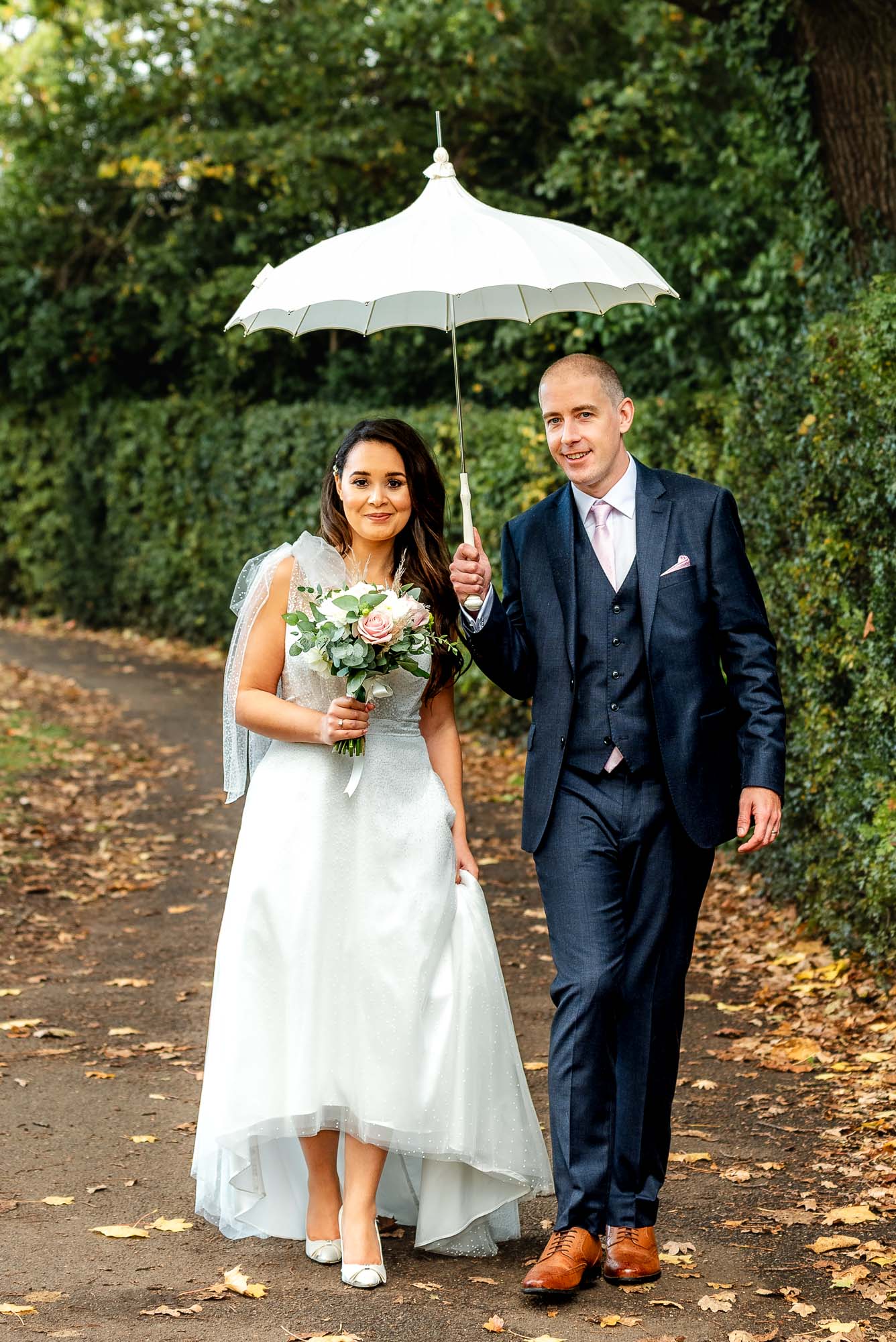 However, Charlotte and Steve didn’t let a bit of autumn rain dampen their spirits. We embraced the weather, capturing some truly romantic and candid moments under umbrellas in the grounds of Danson Park. These ‘rainy day’ photos often end up being the most memorable, reflecting the resilience and genuine excitement of the couple.