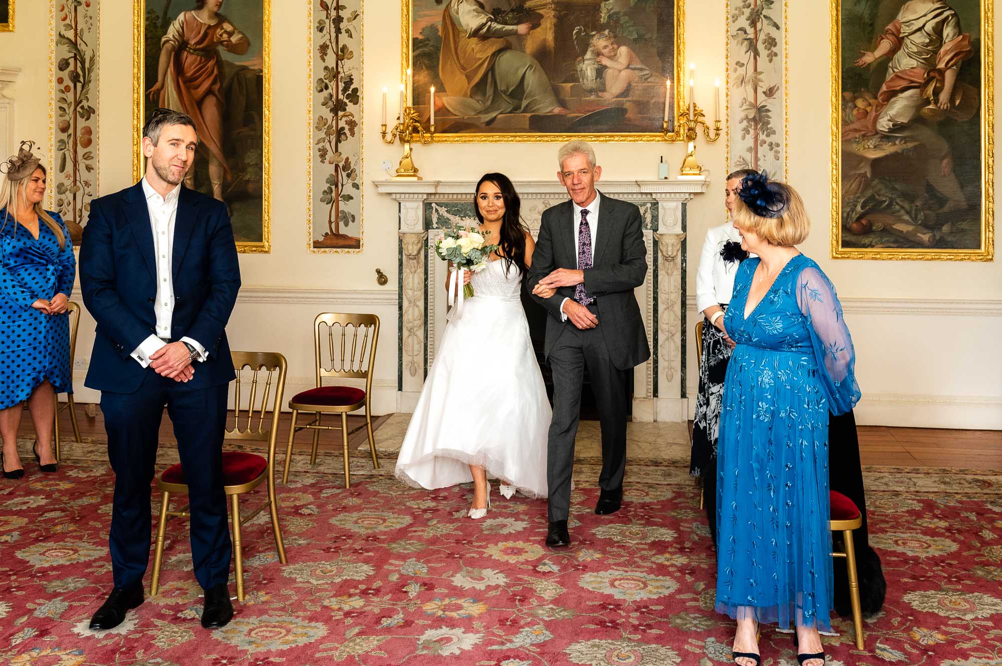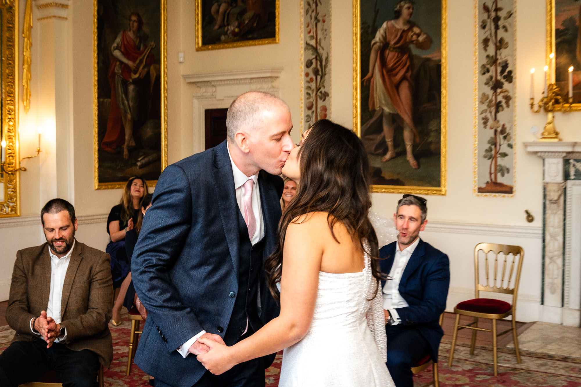Charlotte and Steve gathered their closest family and friends for a ceremony in The Salon Room. Located on the first floor of this stunning Grade I listed Georgian villa; the room is famous for its intricate wall paintings and elegant atmosphere.