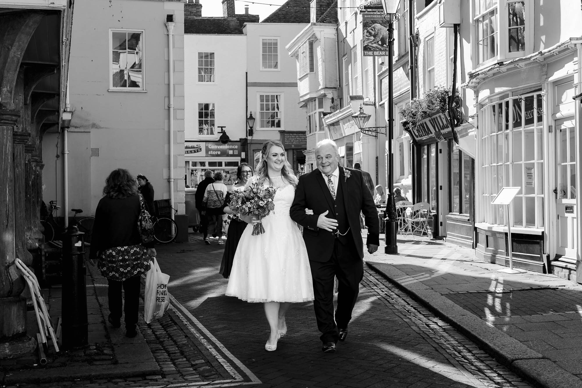 The day began just a short walk away at The Sun Inn. This traditional Shepherd Neame public house features a magnificent bridal suite overlooking the bustling Faversham marketplace.
