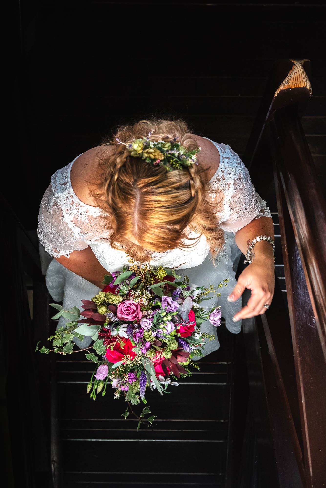 The room was a photographer’s dream, filled with natural light that perfectly illuminated the bridal preparations and detail shots. After some fun moments with her bridesmaids and parents, Abbie and her wedding party made the short, atmospheric walk through the historic town streets to the brewery.