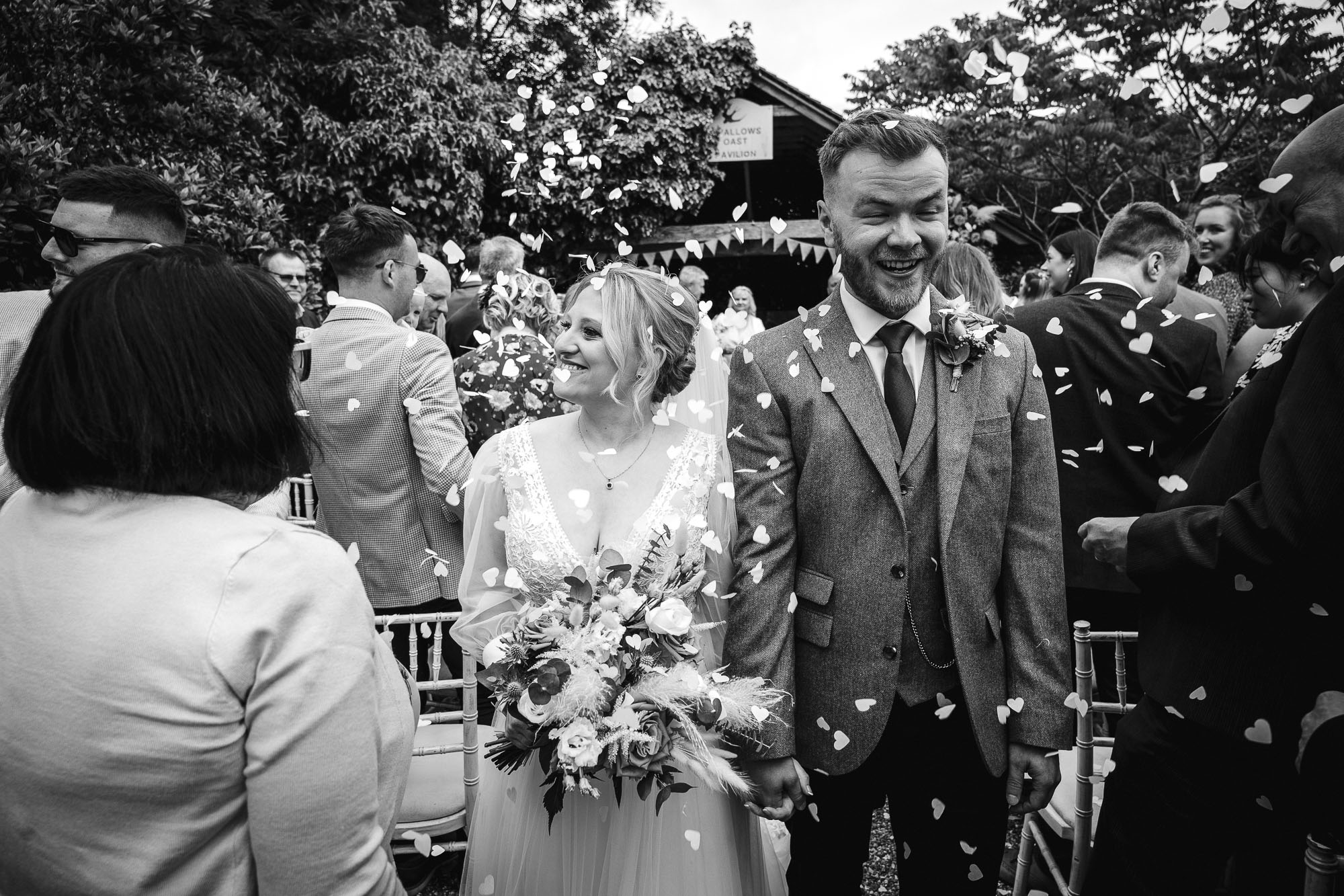After the ceremony, Megan & George walked back down the aisle as newlyweds, greeted by a joyful confetti throw from their friends and family — always a highlight to photograph.