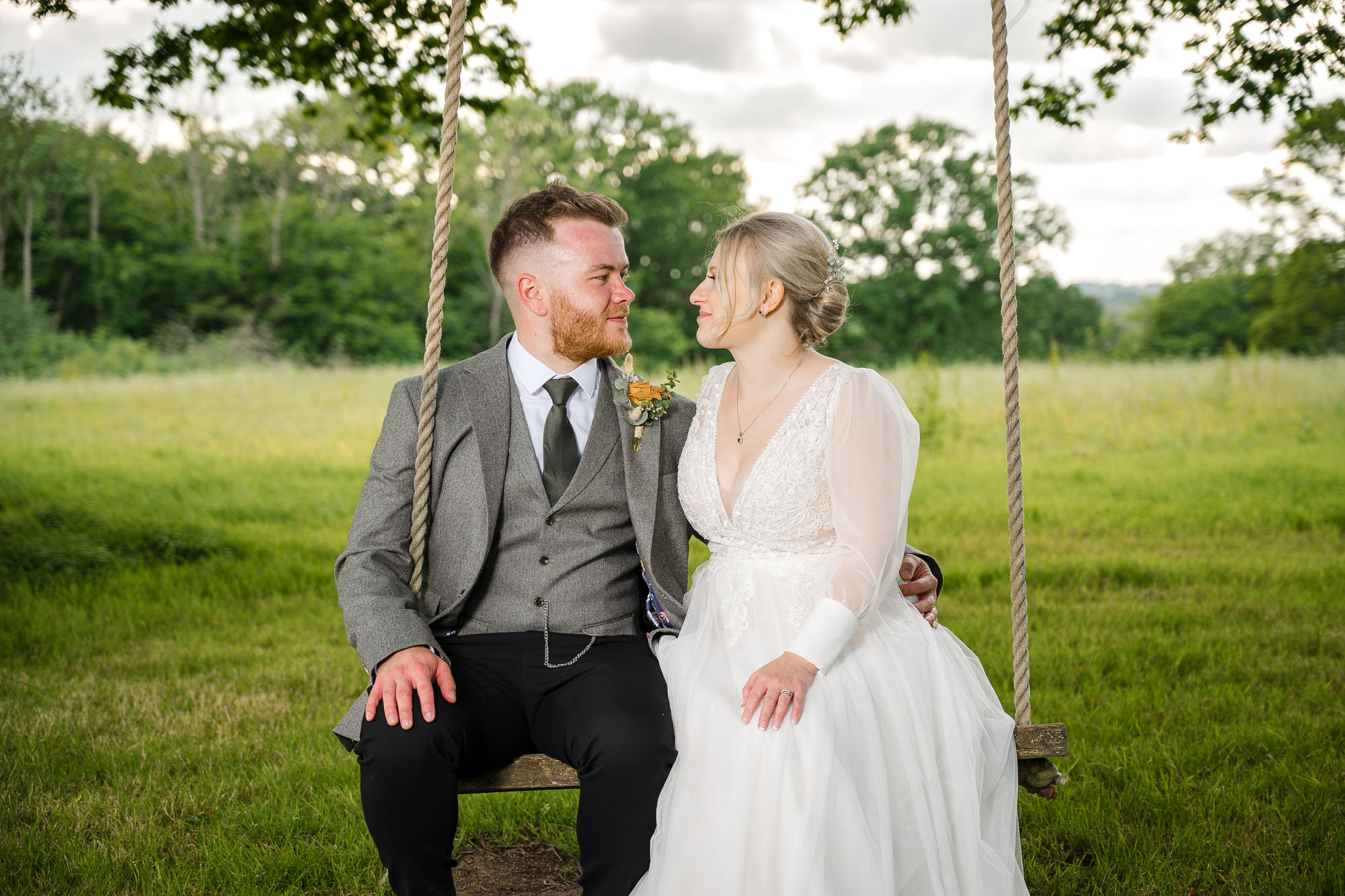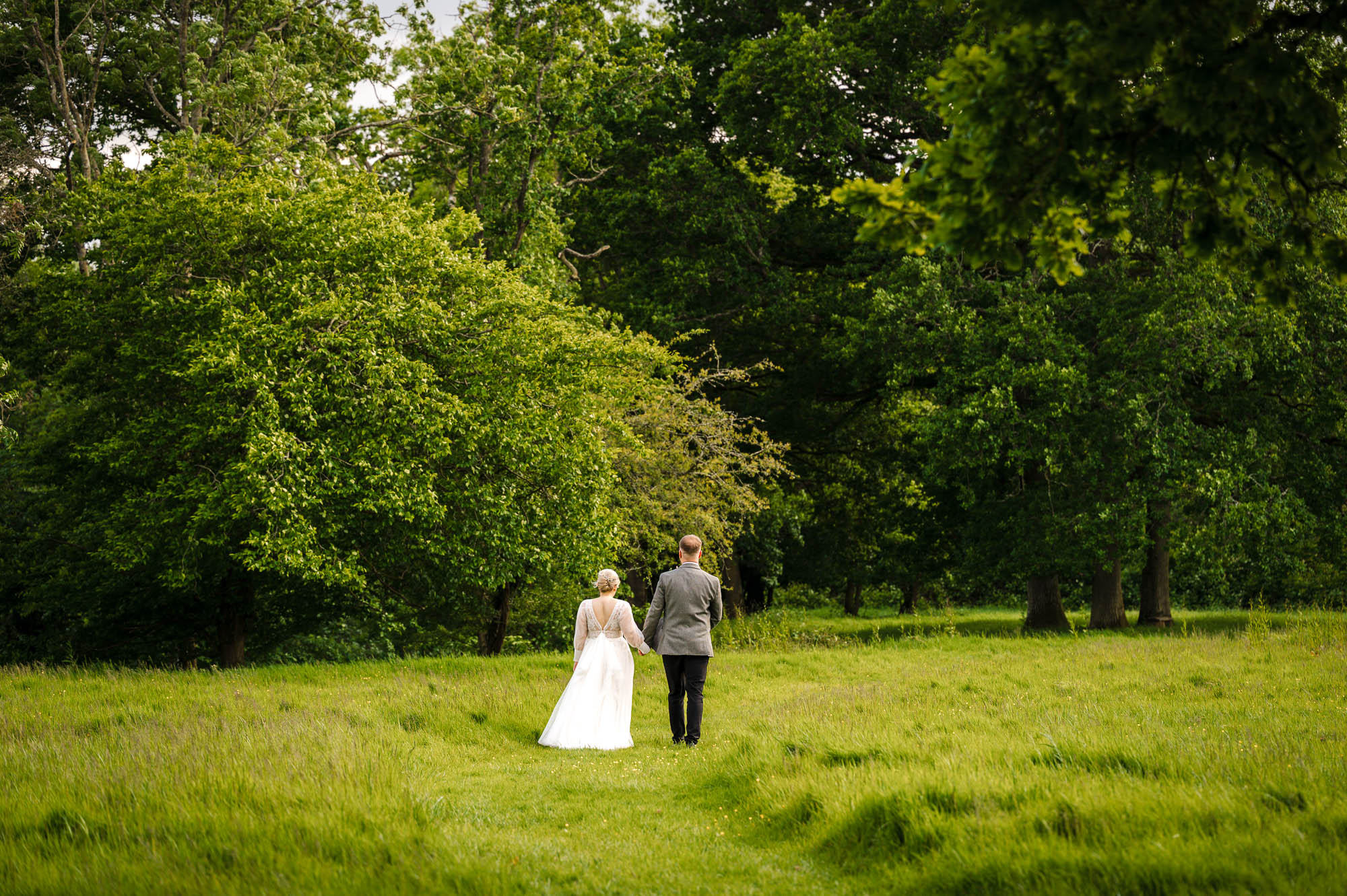 Following time spent mingling with guests, we made our way down to the meadow and woodland area for relaxed couple portraits. Swallows Oast offers incredible variety for wedding photography, from rustic barns to open fields and tucked-away woodland spots, all within easy reach.