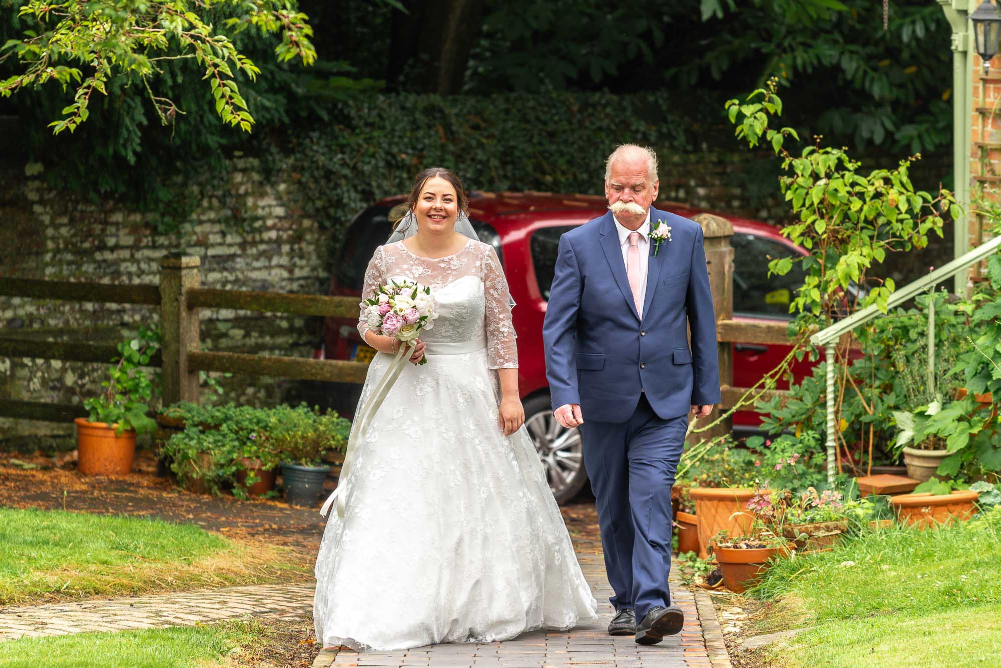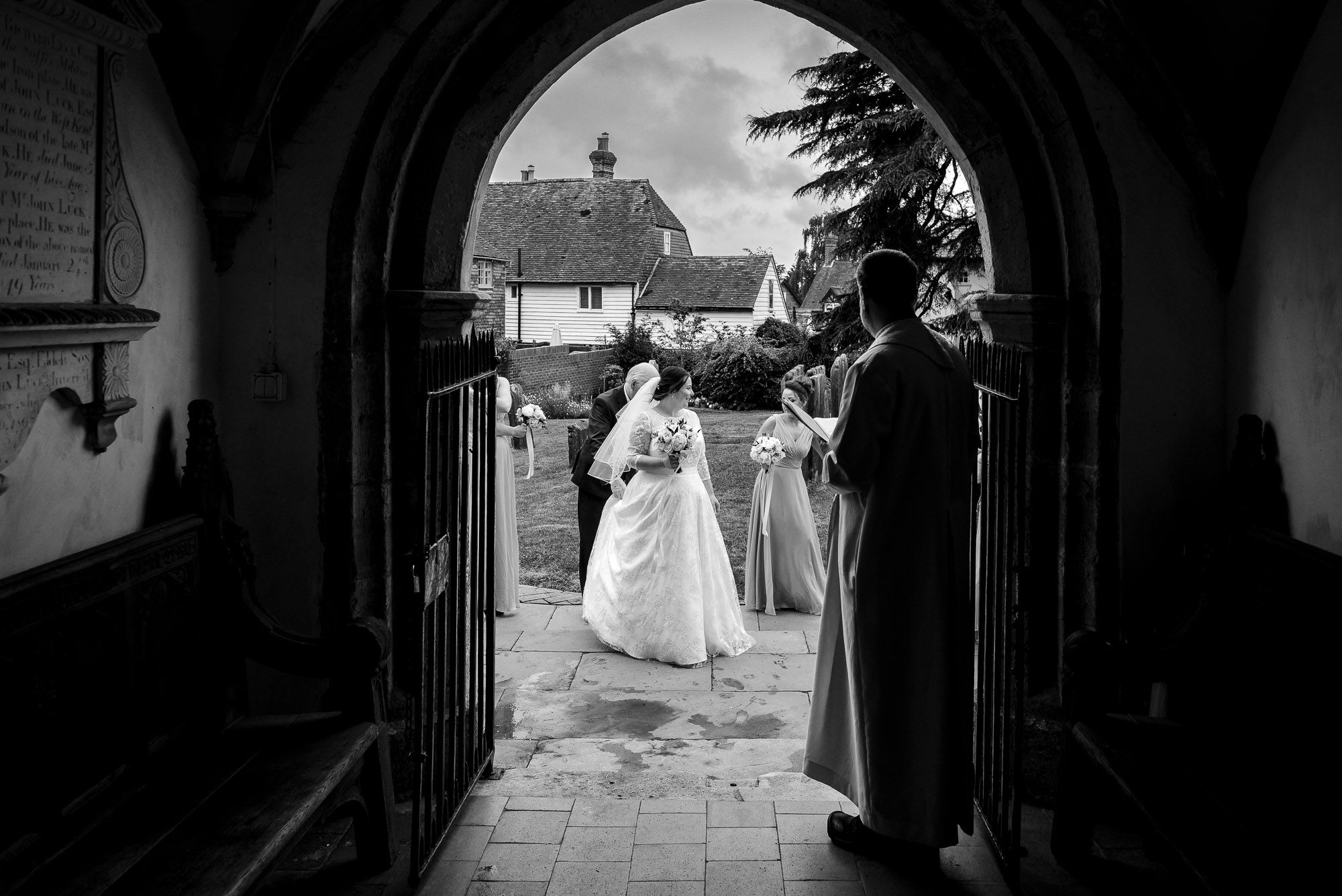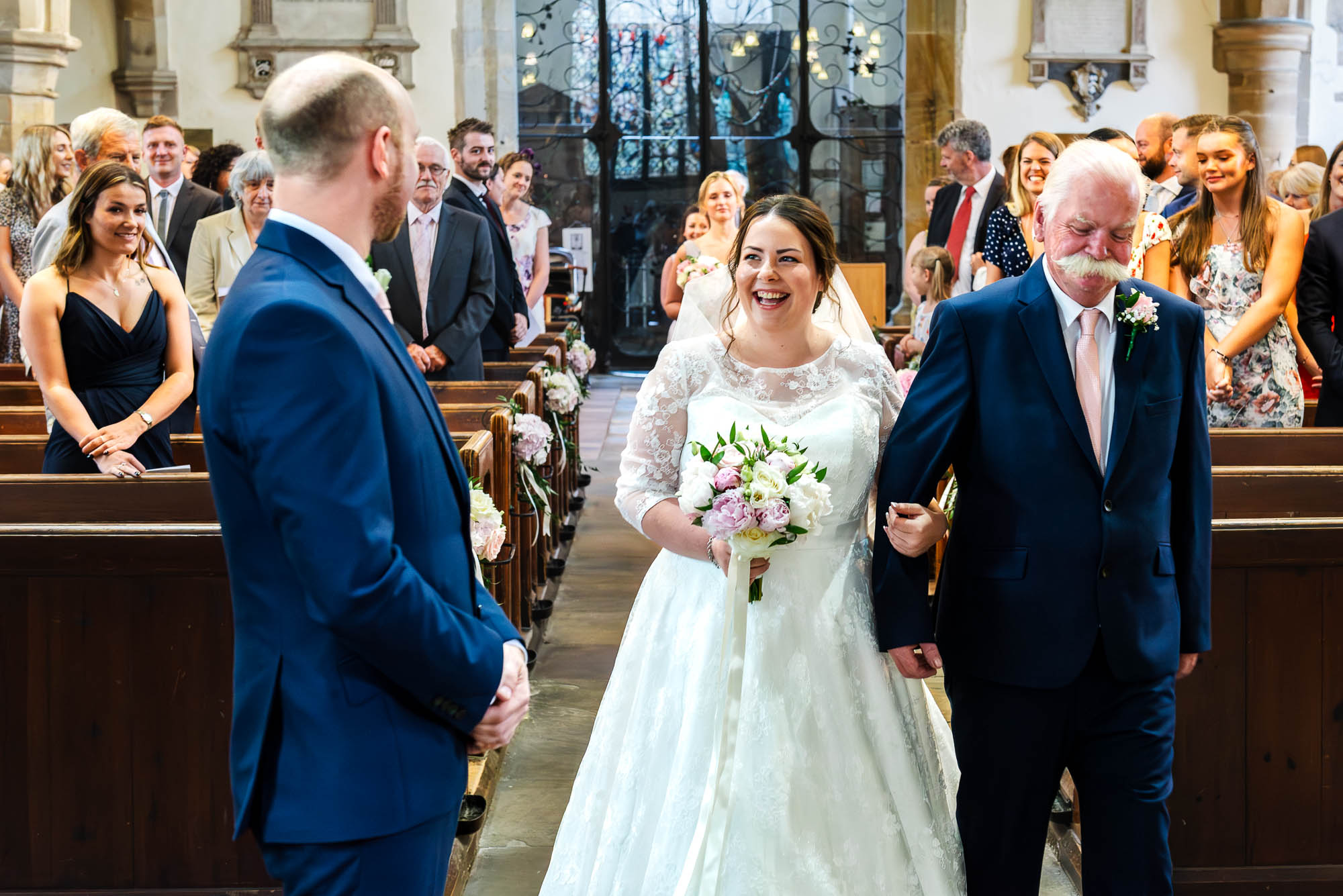 The day began at Wadhurst Church, a stunning building with parts dating back to the 12th century. Despite some typical British ‘pale sunshine’ in the morning, the atmosphere inside was nothing but bright. The historic stone walls and long aisle provided a grand yet intimate setting for Georgina and Steve to exchange their vows.