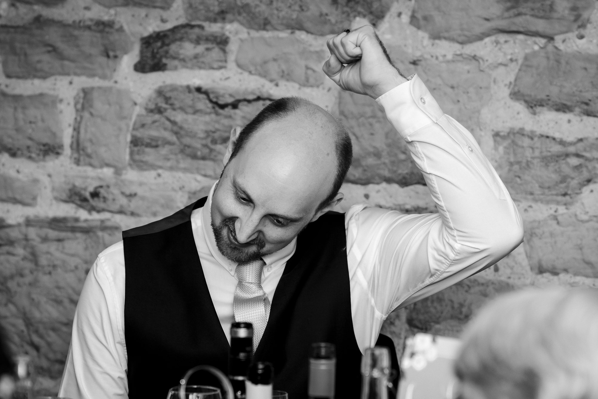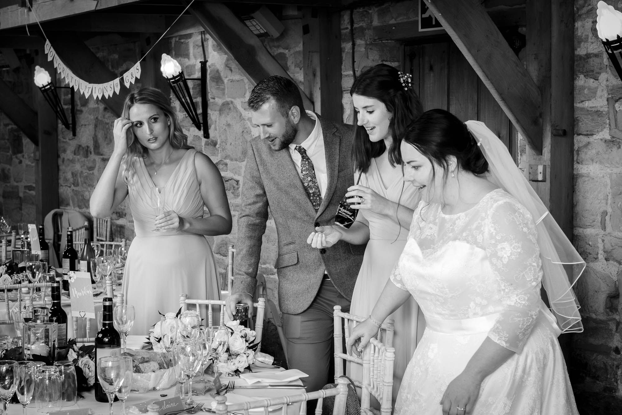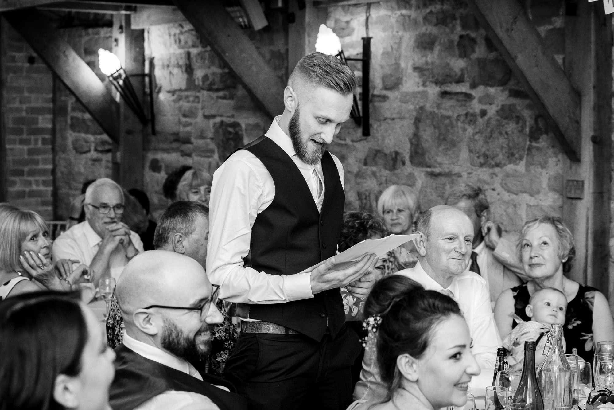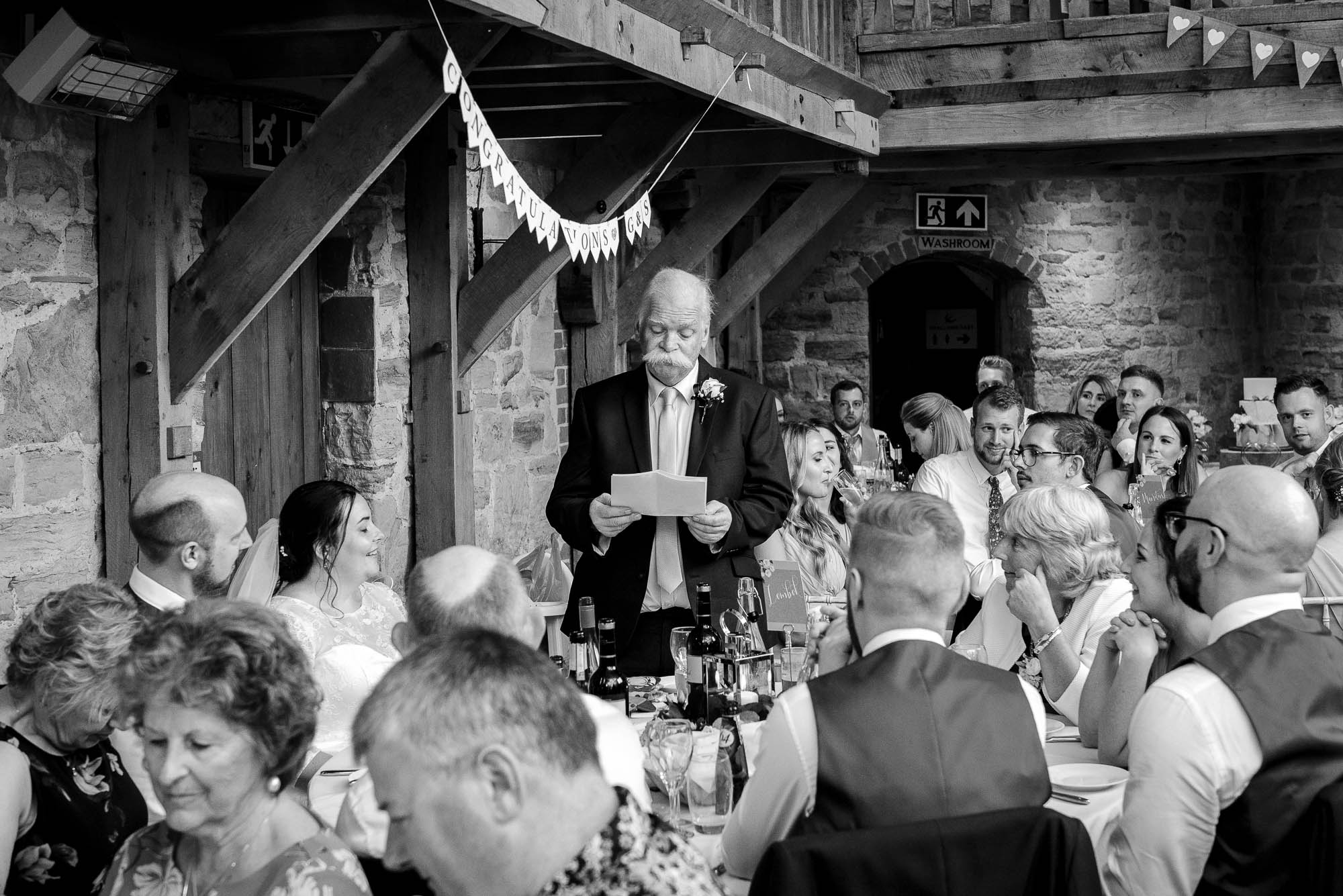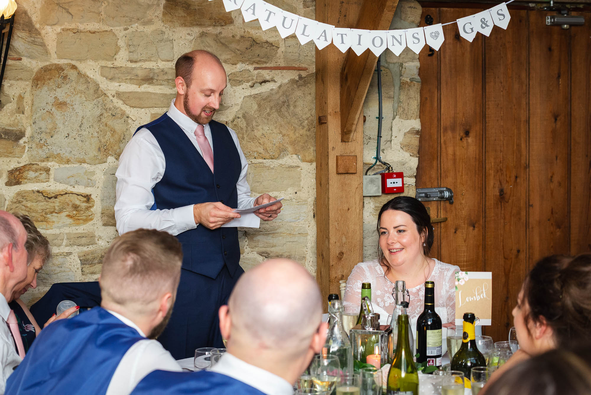 The celebrations kicked off with drinks and canapés in the marquee, allowing guests to stay dry and comfortable while enjoying the views of the surrounding countryside. The main wedding breakfast took place in the main barn, where the speeches provided a perfect mix of laughter and emotional tributes.