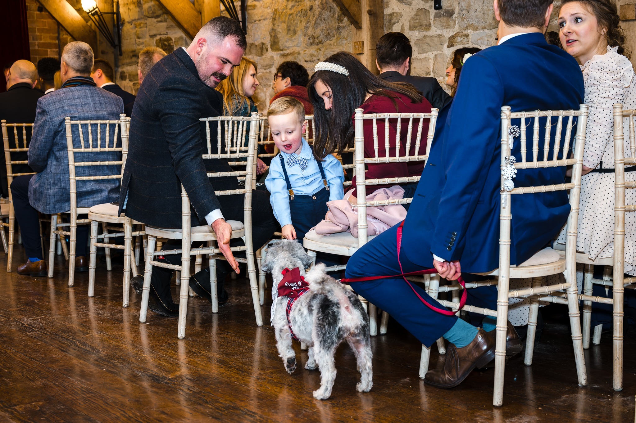 The couple exchanged their vows in the stunning ceremony hall at Swallows Oast, with their beloved pet dog, Belle, playing an essential role as the ring bearer. Belle’s entrance into the hall, just ahead of Faye and her father, caused a moment of confusion as she wondered where to go, much to the amusement of everyone. This playful scene added a delightful touch to the ceremony, which was already filled with emotion and love.