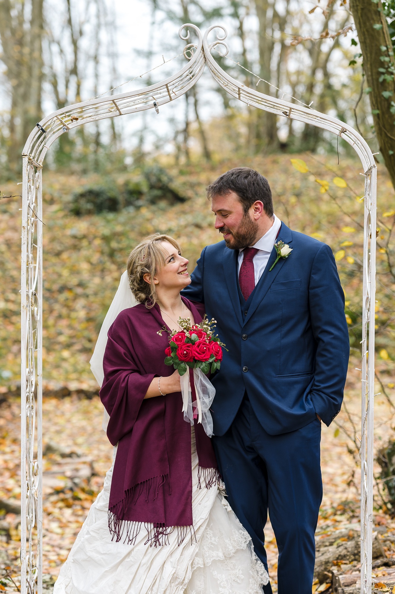 The laughter continued throughout the ceremony, setting a joyful tone for the rest of the day. Once the group photos were completed, Faye and Daniel ventured into the meadow and surrounding woodland area for a few intimate portrait shots. These quiet moments offered an opportunity to capture the couple’s love against the stunning winter landscape.