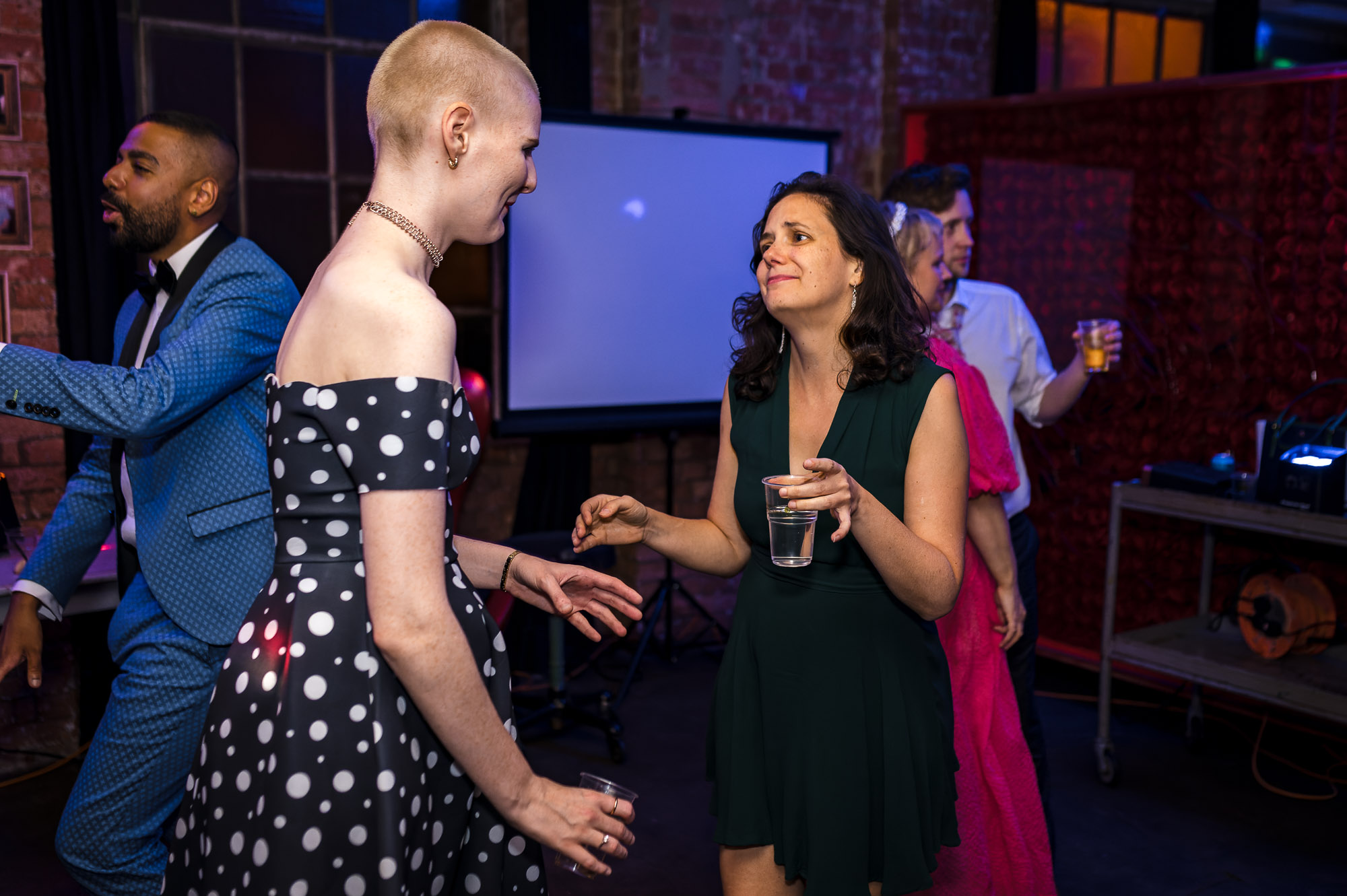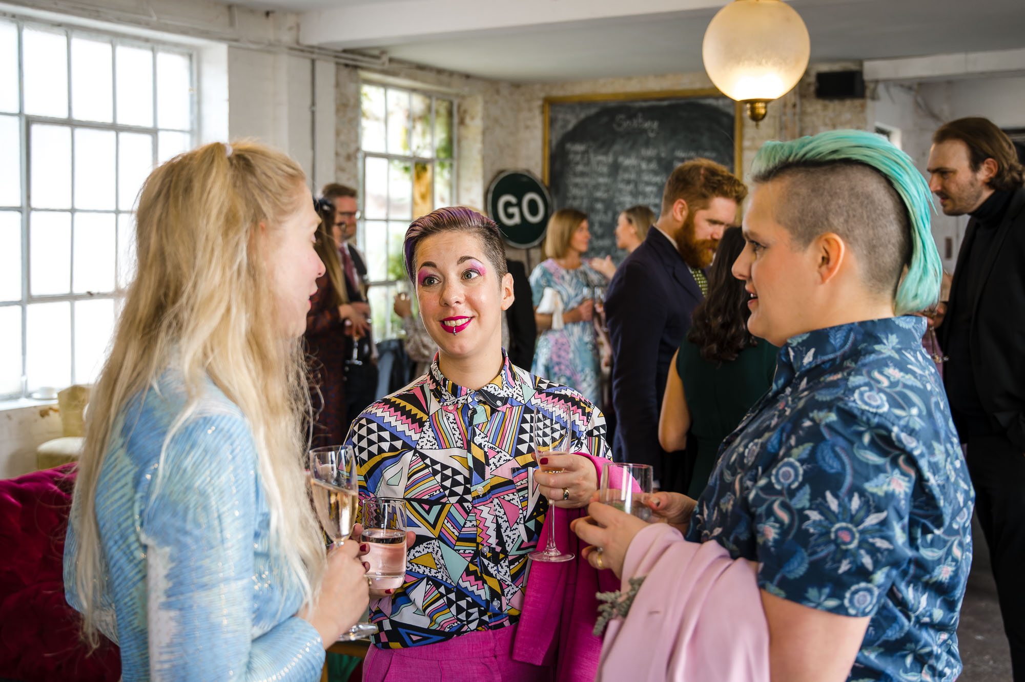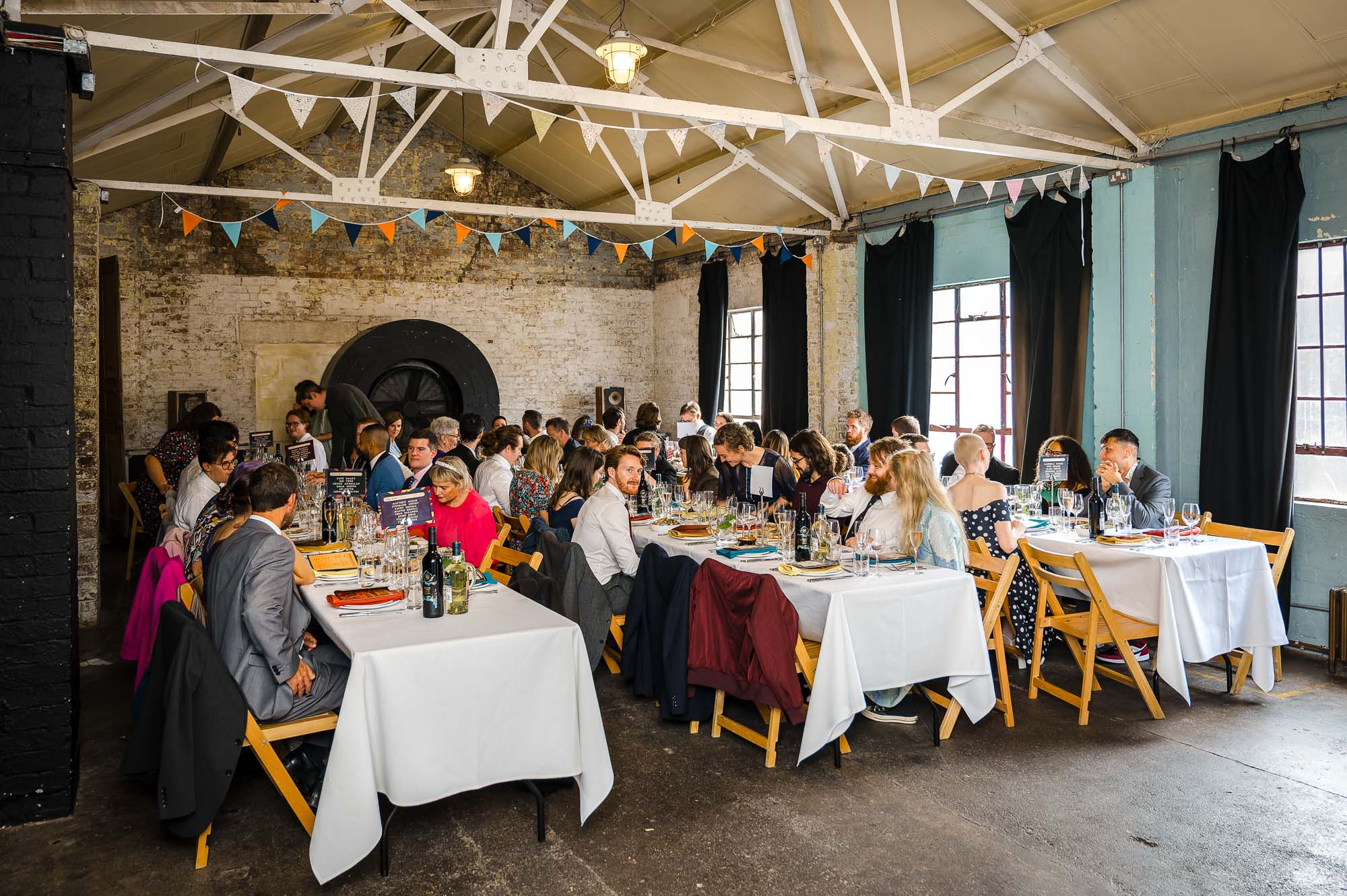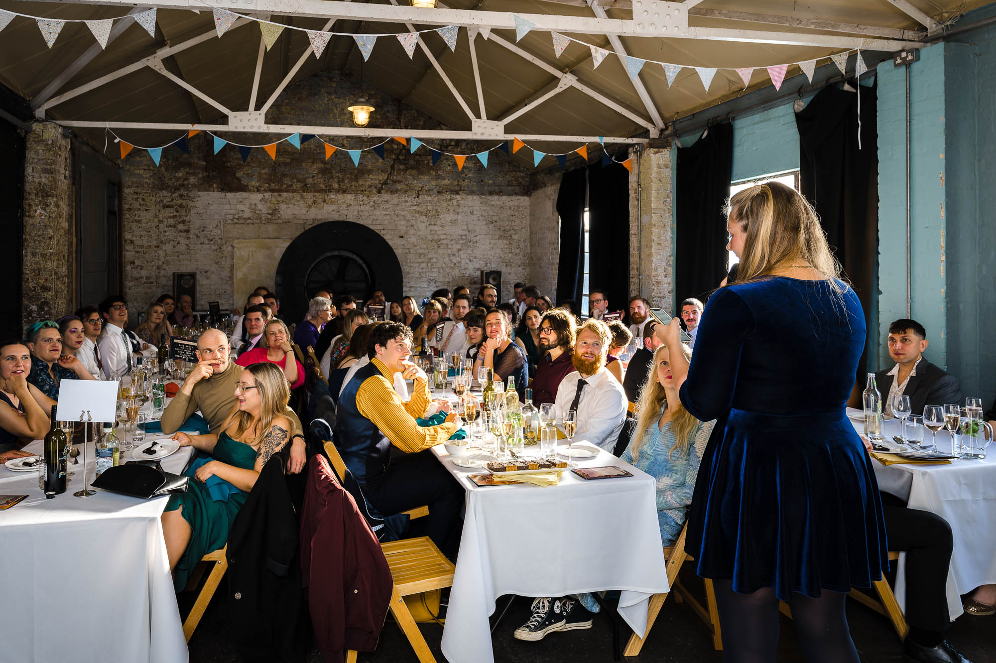 The reception was held at One Friendly Place — a unique and versatile London venue regularly used for filming, private events and weddings. Although it was my first time photographing there, it was immediately clear why Jordan and Kyle had chosen it.